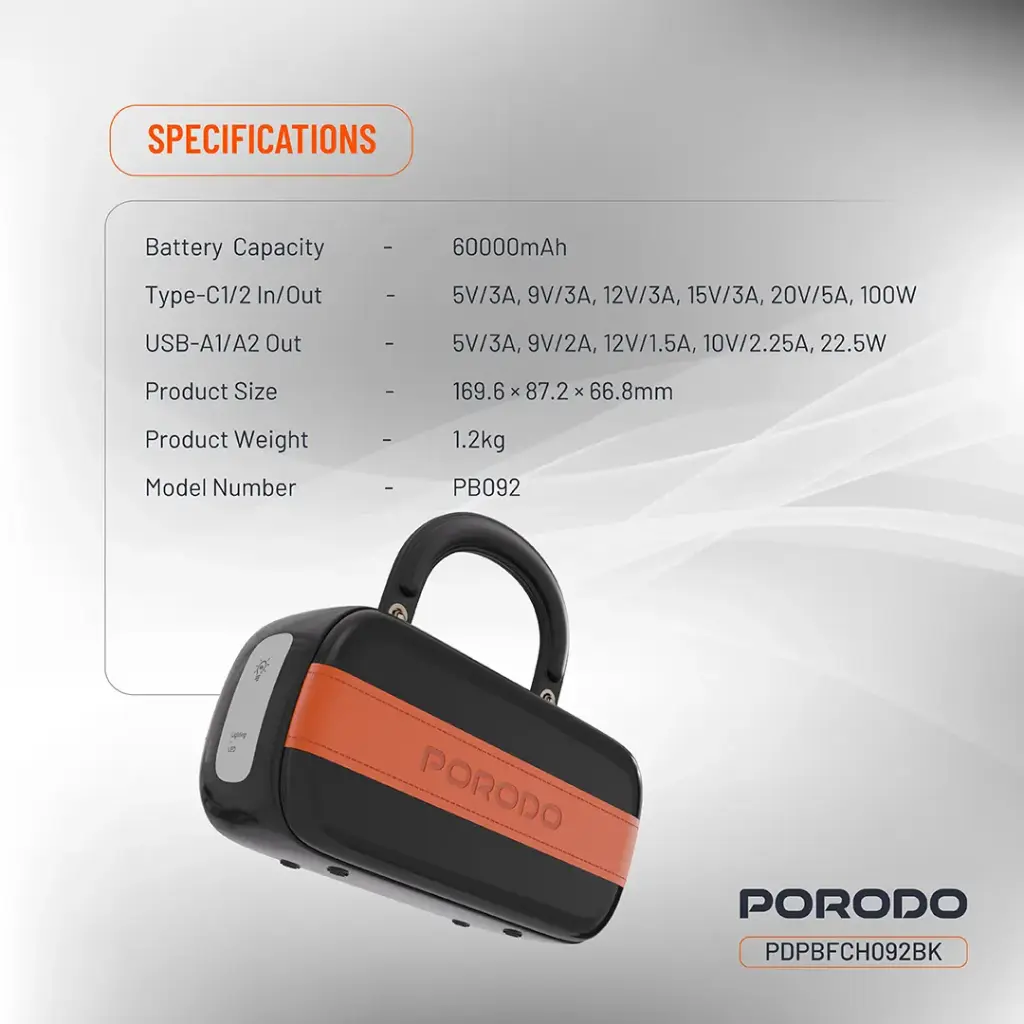 پاوربانک 60000 پرودو مدل Sway (چراغ دار و دستگیره دار)